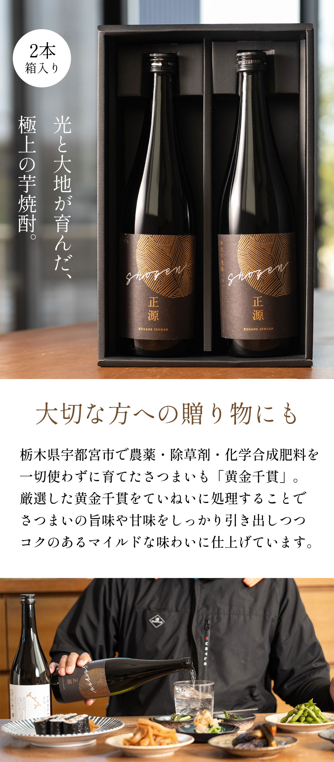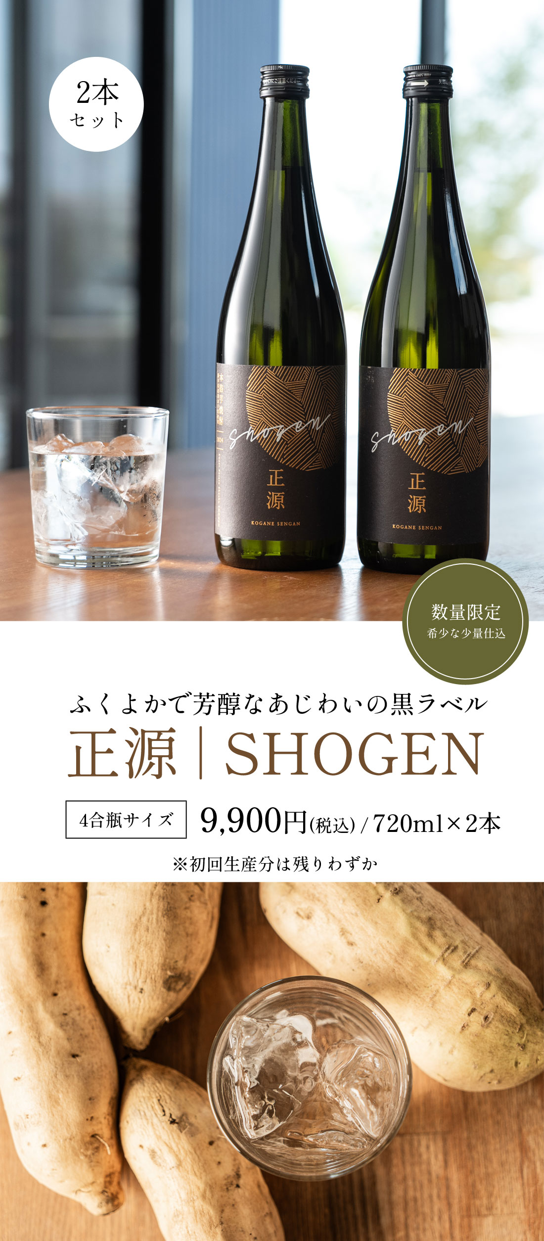 本格芋焼酎 正源 黒2本箱入り(720ml×2本)